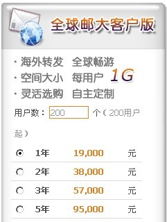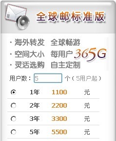 萬網(wǎng)3G云郵箱5用戶版(750元/年)